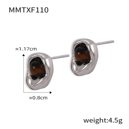 | nameOriginal | Hong Kong-style irregular small gold bean pendant inlaid with natural tiger's eye stone necklace niche design titanium steel earrings suit |