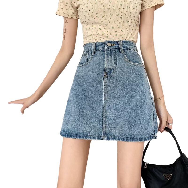 | nameOriginal | Hong Kong Style Retro High Waist Denim Skirt Women's Summer plus size chubby girl Student All-match Slimming Hip A- line Skirt |