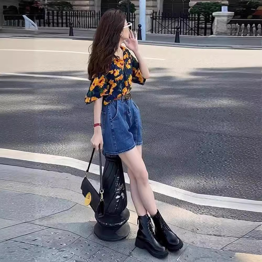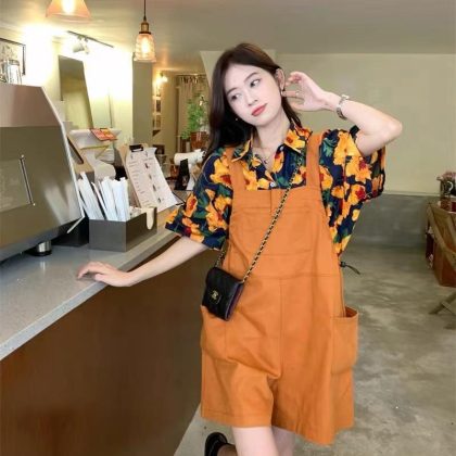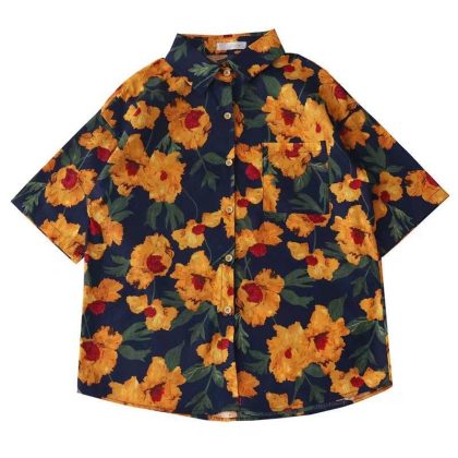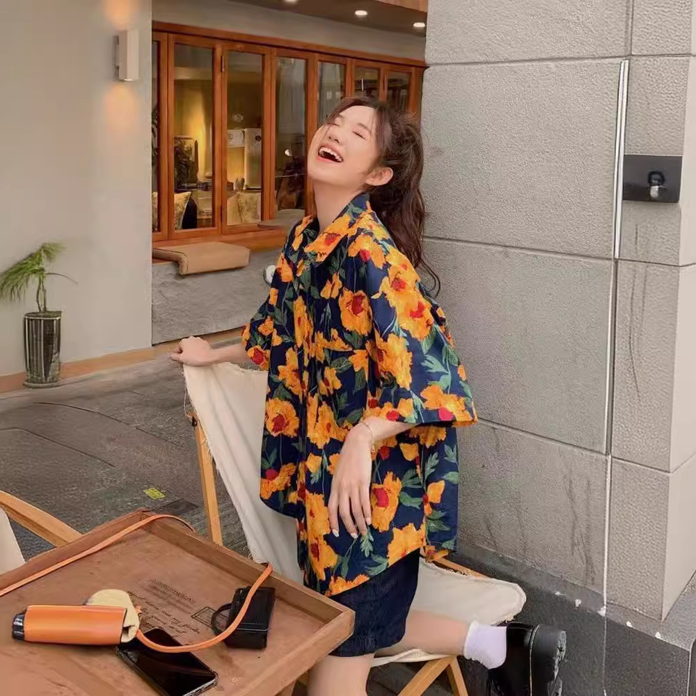 | nameOriginal | Hong Kong style retro short-sleeved shirt parent-child wear summer flower print loose design sense niche medium and large children's clothing top |