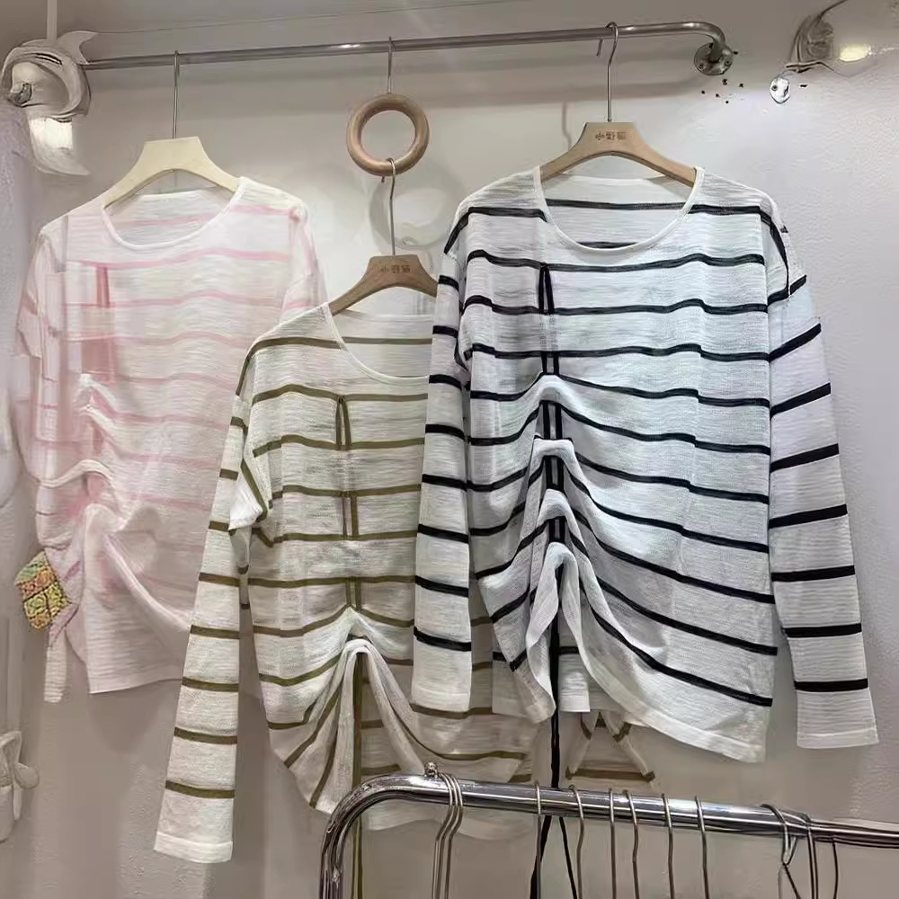 | nameOriginal | Hong Kong Style Retro Striped Knitwear Women's Early Spring Thin Loose Ice Silk Long Sleeve Sunscreen Blouse T-Shirt Korean Style Top |