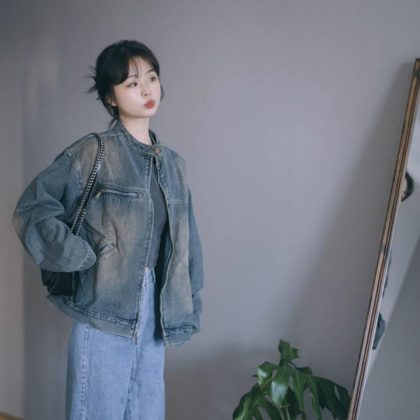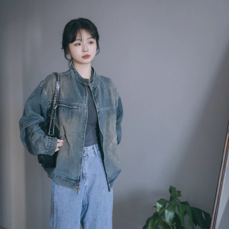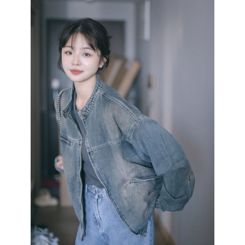 | nameOriginal | Hong Kong Style Vintage Denim Short Coat Women's 2024 Autumn Washed Old Niche Crewneck Loose Jacket Top |