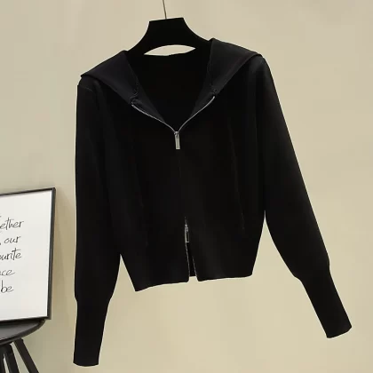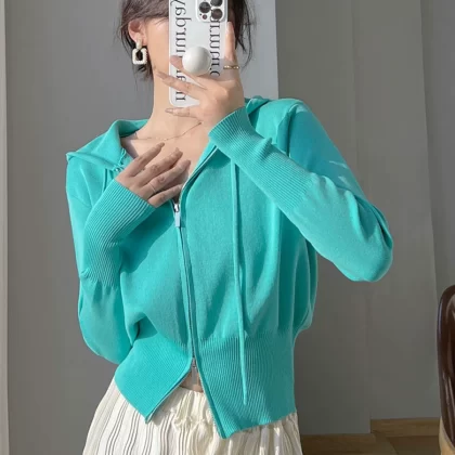 | nameOriginal | Hooded double zipper cardigan ice silk short coat drawstring |