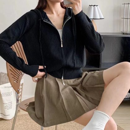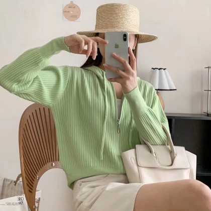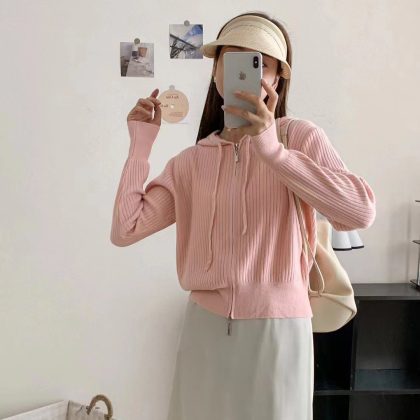 | nameOriginal | Hooded Double Zipper Casual Style Sweater Coat Autumn and Winter Korean Style New Candy Color Casual All-match Knitted Cardigan for Women |