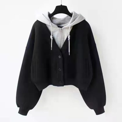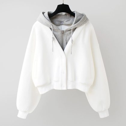 مقنعين وهمية قطعتين سترة قصيرة ملابس نسائية 2022 الكورية نمط خياطة تصميم تحسس الموضة سترة صغيرة قميص الخارجي