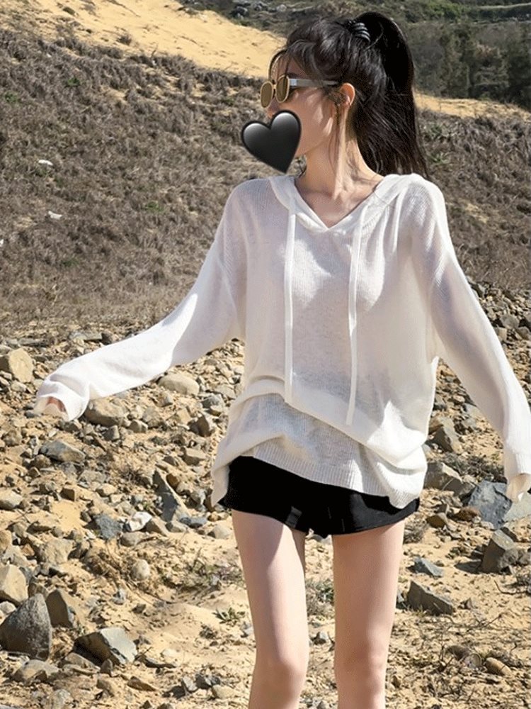 | nameOriginal | Hooded Ice Silk Knitwear Women's Long-sleeved Thin Sunscreen Blouse 2024 New Summer Loose Slimming Knitted Top |