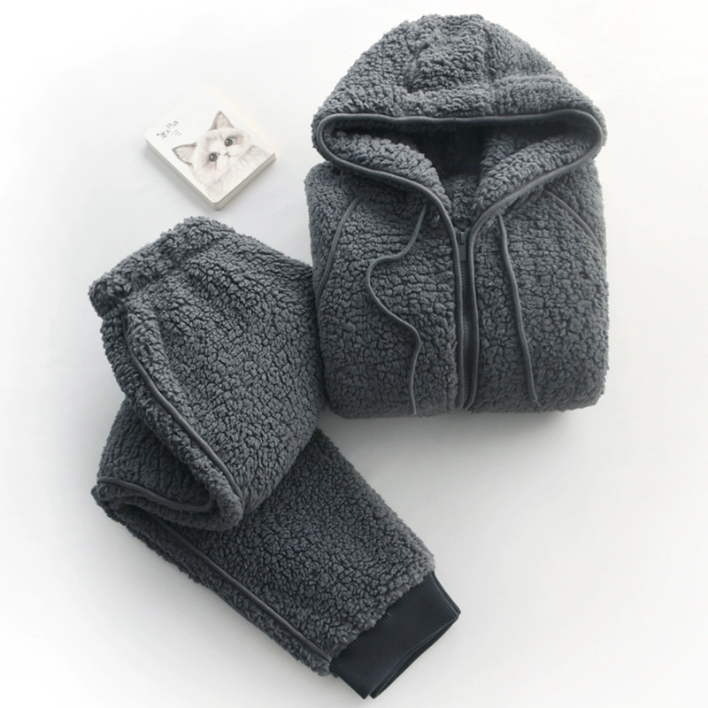 | nameOriginal | Hooded men's and women's sherpa thickened warm couple's pajamas |