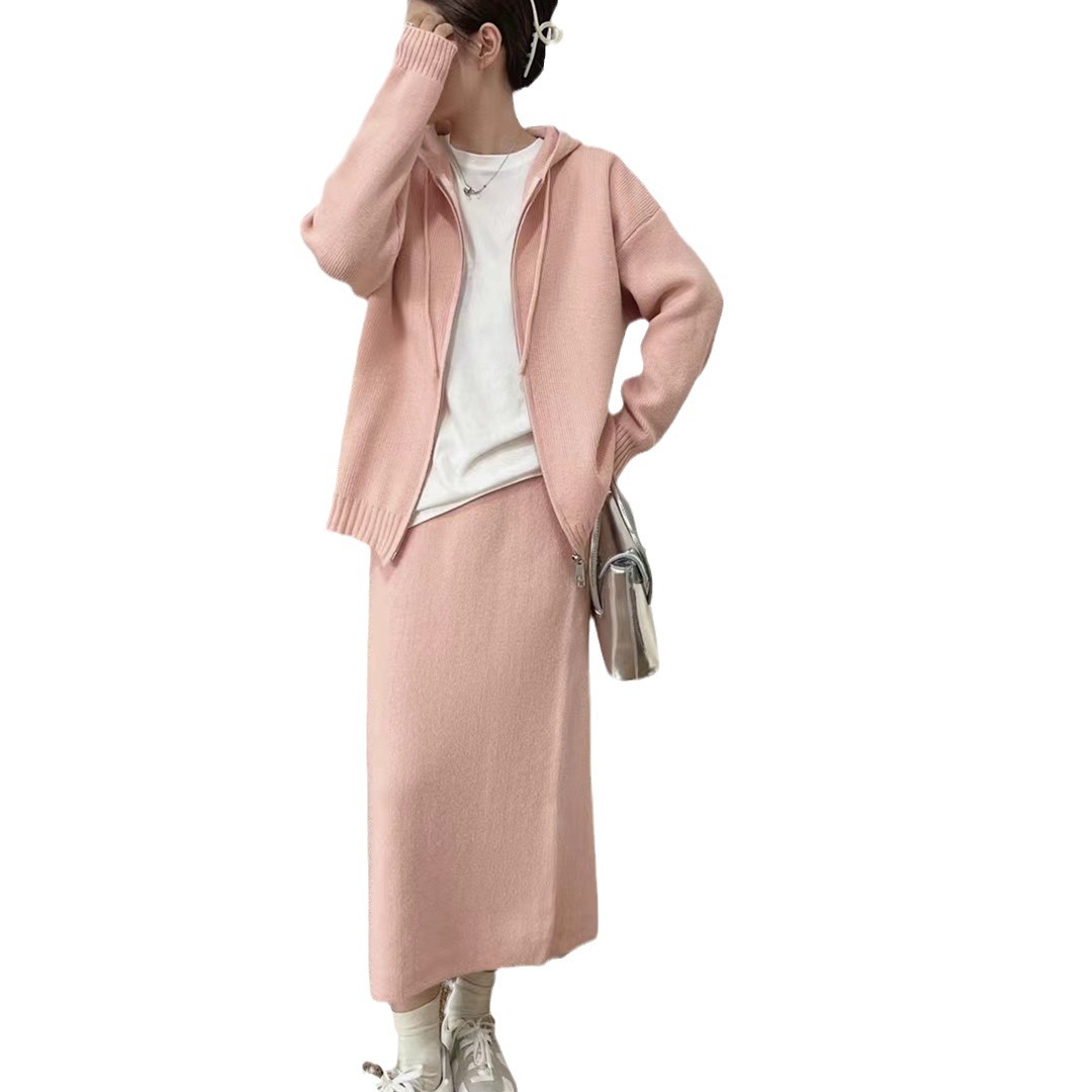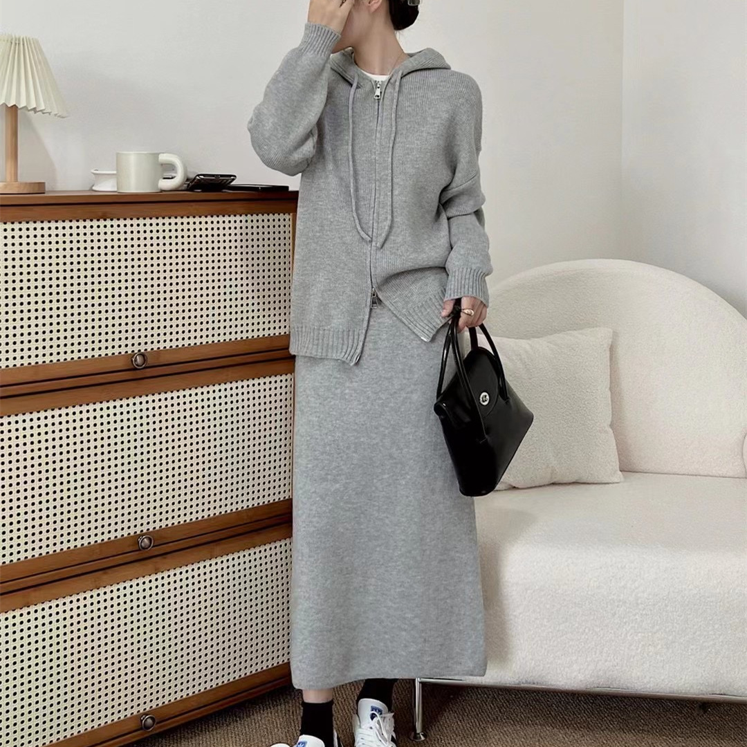 | nameOriginal | Hooded Zipper Knitted Cardigan Sweater suit Women Autumn and Winter New Korean Style Lazy Style Casual Skirt Two-piece Set |