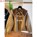 | nameOriginal | Horn buckle design sense niche loose knitted stitching doll collar lightweight cotton-padded coat women's winter rhombus plaid coat |