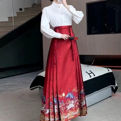 | nameOriginal | Horse Face Dress 2024 New Satin Digital Print Women's Chinese Style Hanfu Horse Face Dress Travel Skirt |