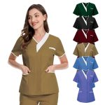 ثوب المستشفى الجراحي بالجملة قصير الأكمام طبيب ممرضة ثوب القطن الخامس الرقبة فني ملابس العمل النساء عيادة صالون تجميل الأعلى