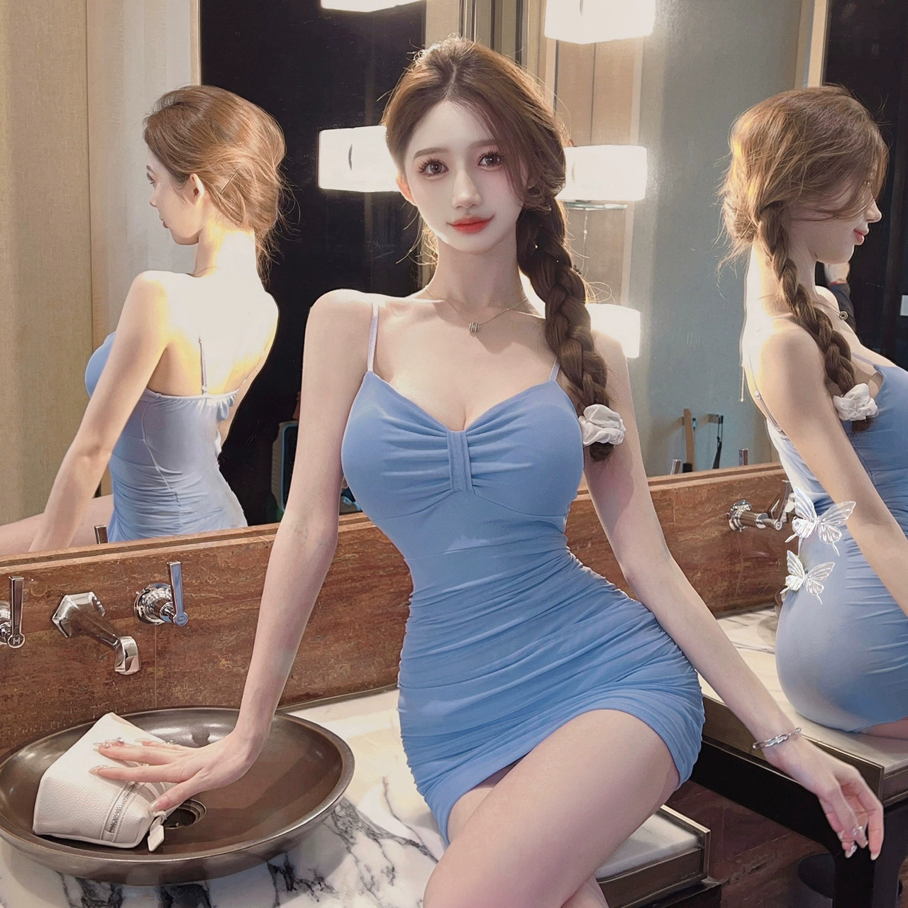 | nameOriginal | Hot girl style sexy pure lust dress low-cut suspender tight inner wear nightclub work clothes white hip-covering short skirt |