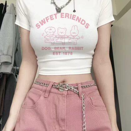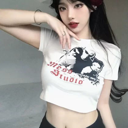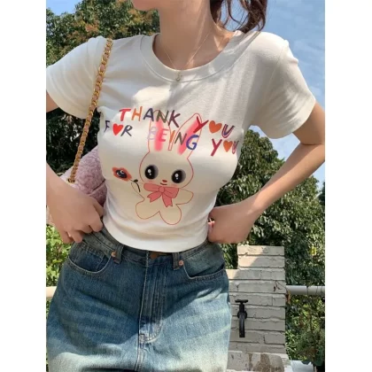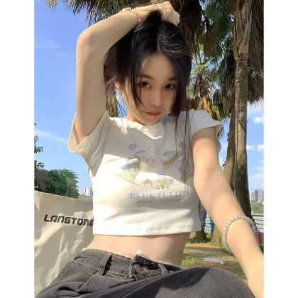 | nameOriginal | Hot girl's right shoulder t-shirt slim fit inner wear ins top short sleeves |