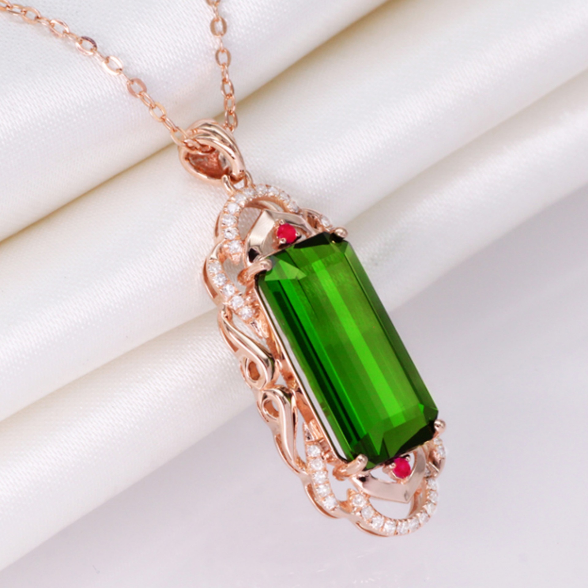 | nameOriginal | Hot Sale round rectangular pendant Brazil rich green Tourmaline gemstone pendant diamond red zircon rectangular gemstone pendant |