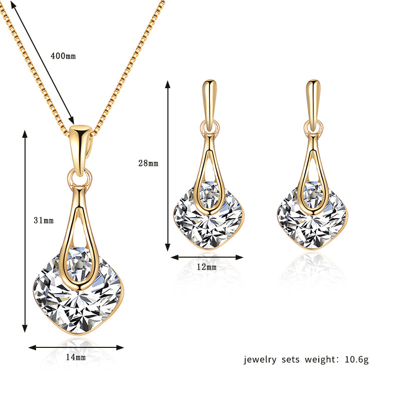 مجموعة مجوهرات رباعية شخصية أوروبية وأمريكية الأكثر مبيعًا عبر الحدود مجموعة مجوهرات أقراط وقلادة من الزجاج المطلي بالكهرباء