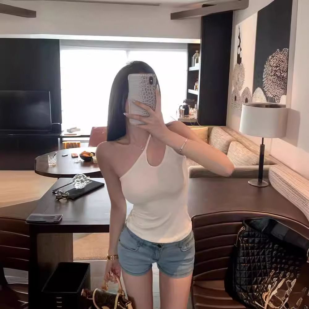 | nameOriginal | [Hot Summer] Vest Versatile Solid Color Slant Shoulder Irregular Pit Knitted Elastic Sling |