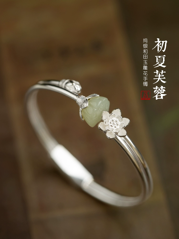 | nameOriginal | Hotan Jade Girl Retro Lotus Bracelet White Jade |