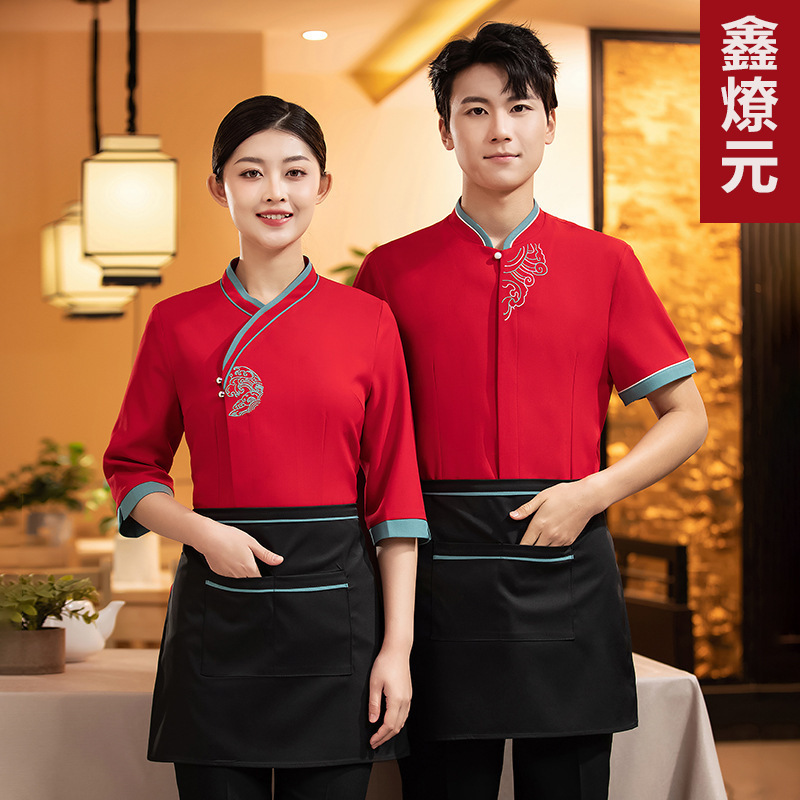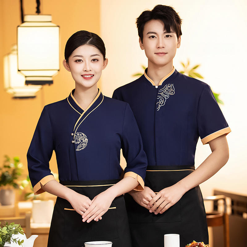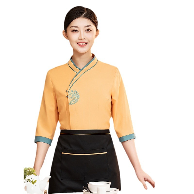 | nameOriginal | Hotel catering waiter three-quarter sleeve work clothes Chinese restaurant restaurant hot pot restaurant lobby staff summer clothes |