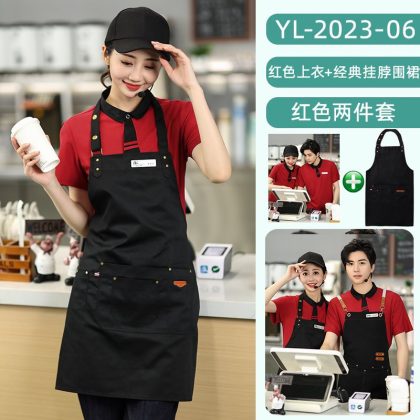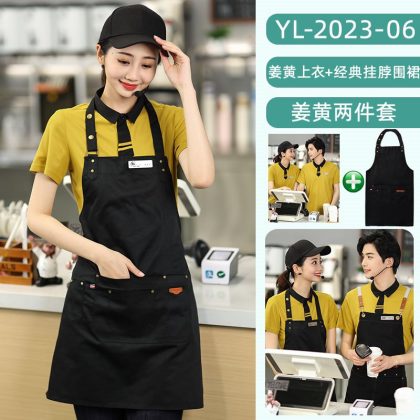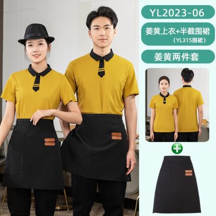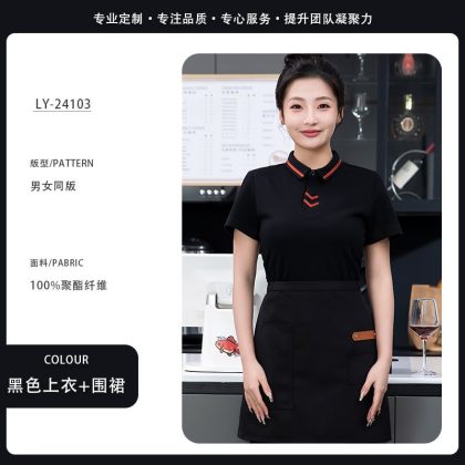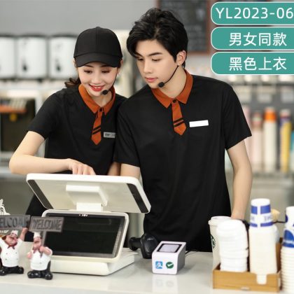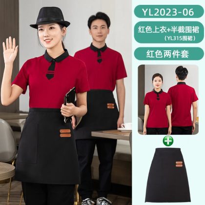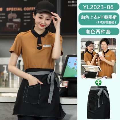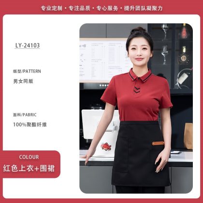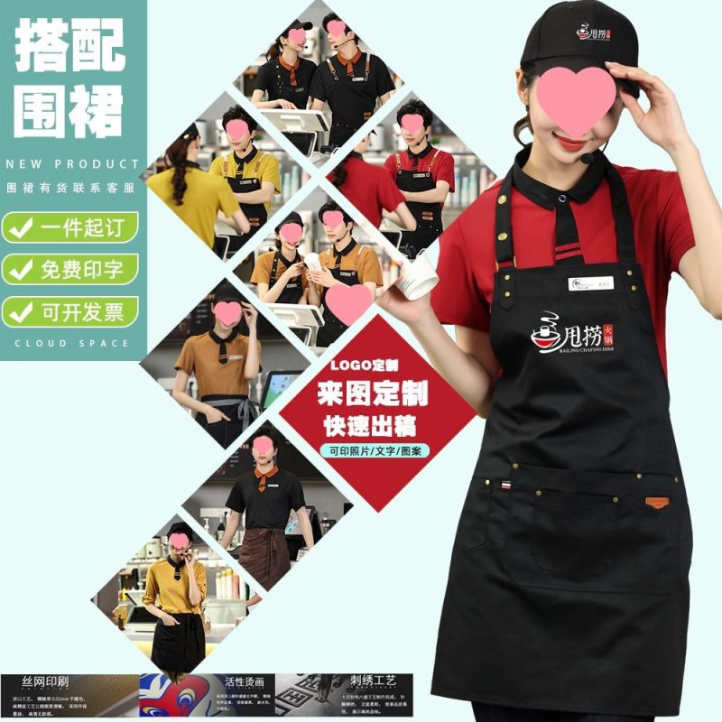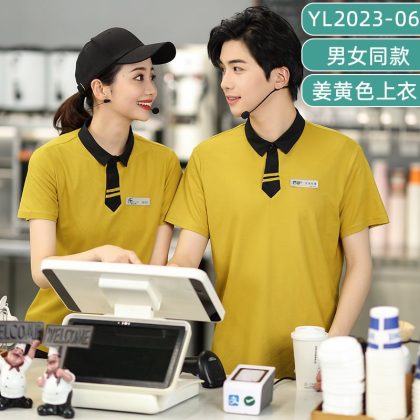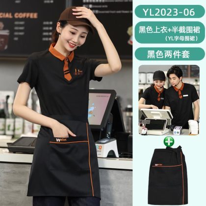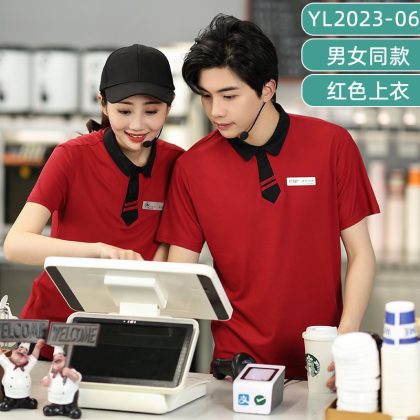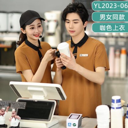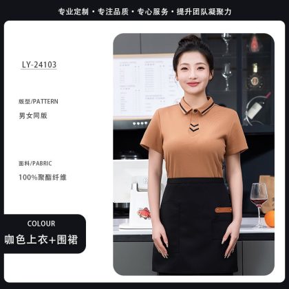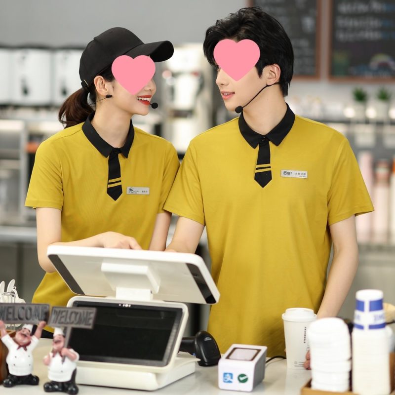 Hotel Catering Work Clothes Summer Short-sleeved T-shirt Milk Tea Coffee Hot Pot Restaurant Waiter Work Clothes Printed logo