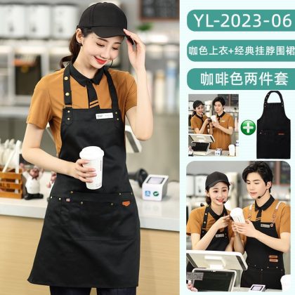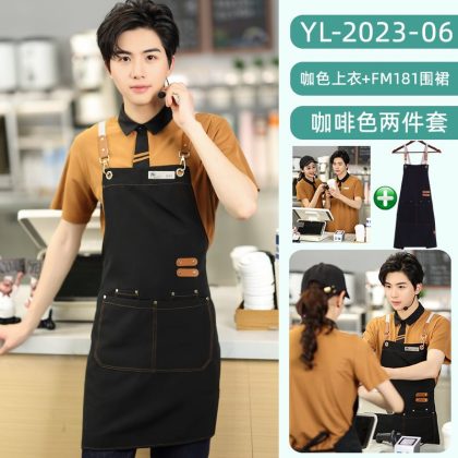 فندق تقديم الطعام ملابس العمل الصيف قصيرة الأكمام تي شيرت الحليب الشاي القهوة إناء/ قدر مطعم النادل ملابس العمل شعار مطبوع