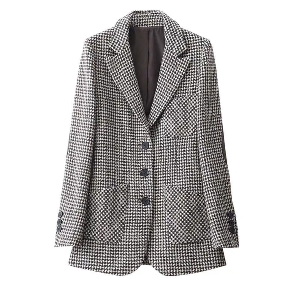 | nameOriginal | Houndstooth Woolen Small Suit Jacket Women's Mid-length Slim-fit Waist Elegant Autumn and Winter plus size Suit Jacket for Women |