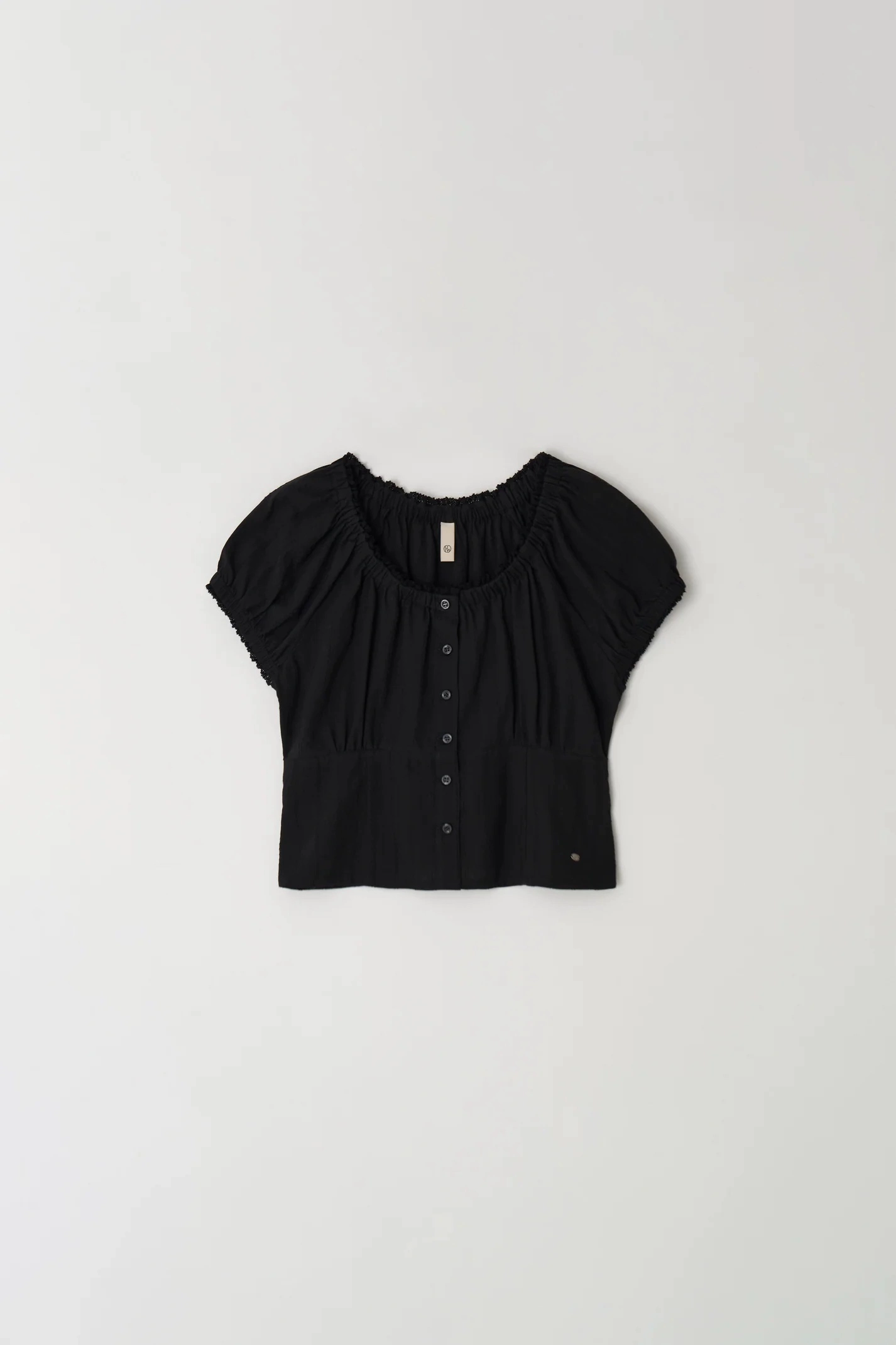 | nameOriginal | howu wrinkled short sleeves single breasted waist slimming lace |