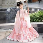 Huamihei Original Hanfu Women's Ancient Costsize Pink Ming Cloud Shoulder Stand Collar Pair Long Shirt Chinese Style Spring and Summer Dress