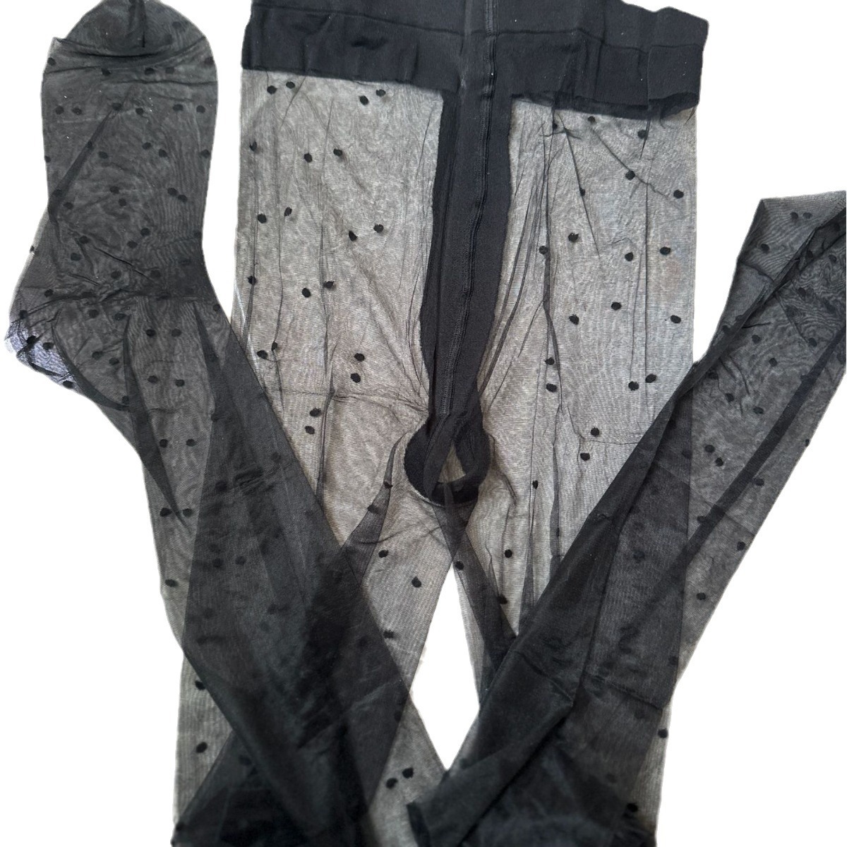 Huamuyan H153 black polka dot 5D pantyhose T crotch toe transparent white with feet