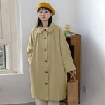 معطف هوانغ تشنغ كاكي للنساء معطف طويل قصير 2023 ربيع جديد فضفاض للتخسيس قطعة علوية واحدة الصدر