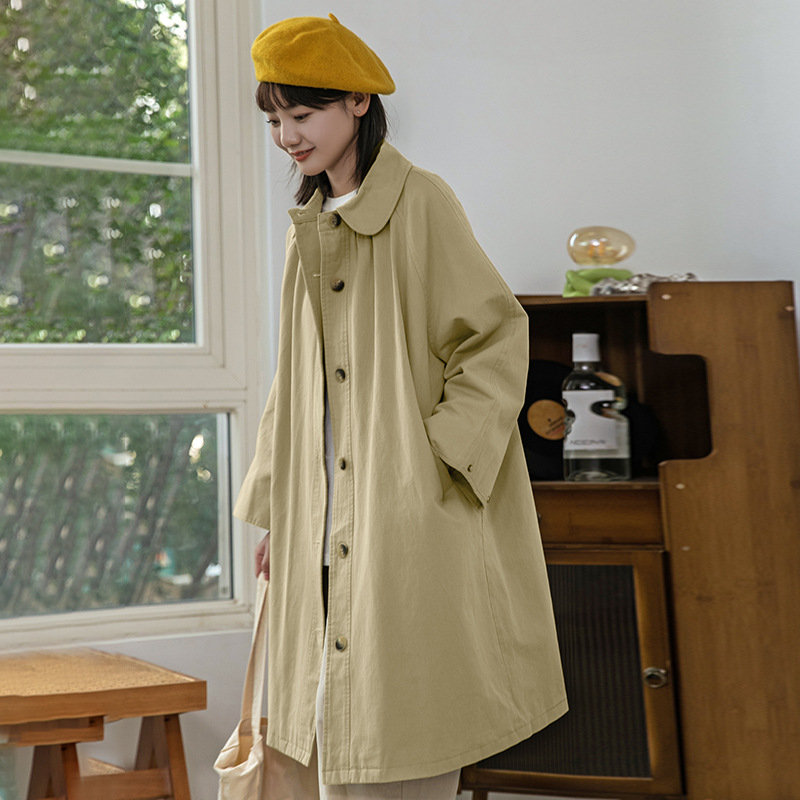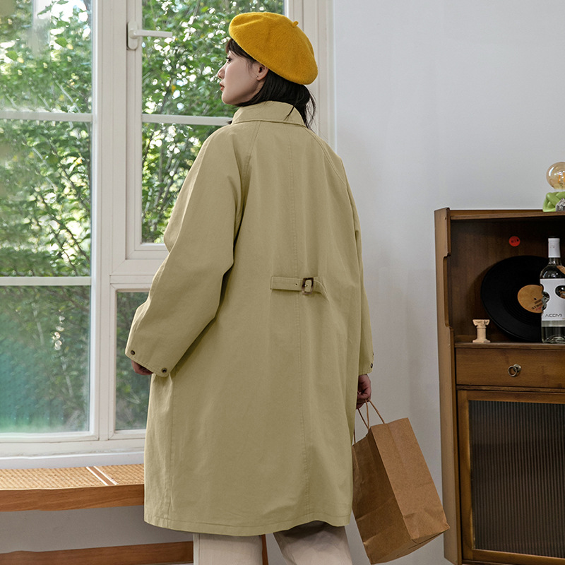 Huang Zheng Khaki Coat Women's Short Long Coat 2023 Spring New Loose Slimming Single-breasted Top
