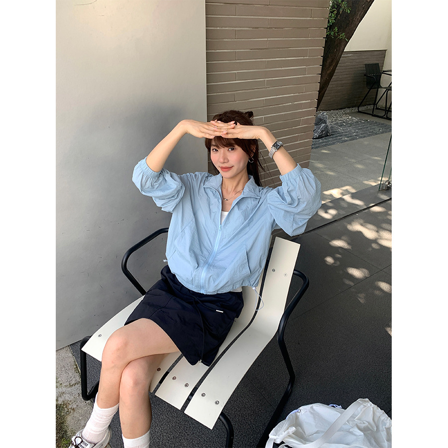 | nameOriginal | Huang Zheng Korean stand collar sunscreen overcoat women's 2024 summer thin loose casual blouse cardigan 142CH460 |