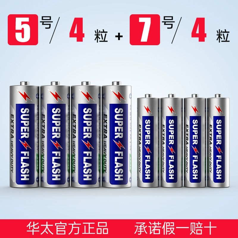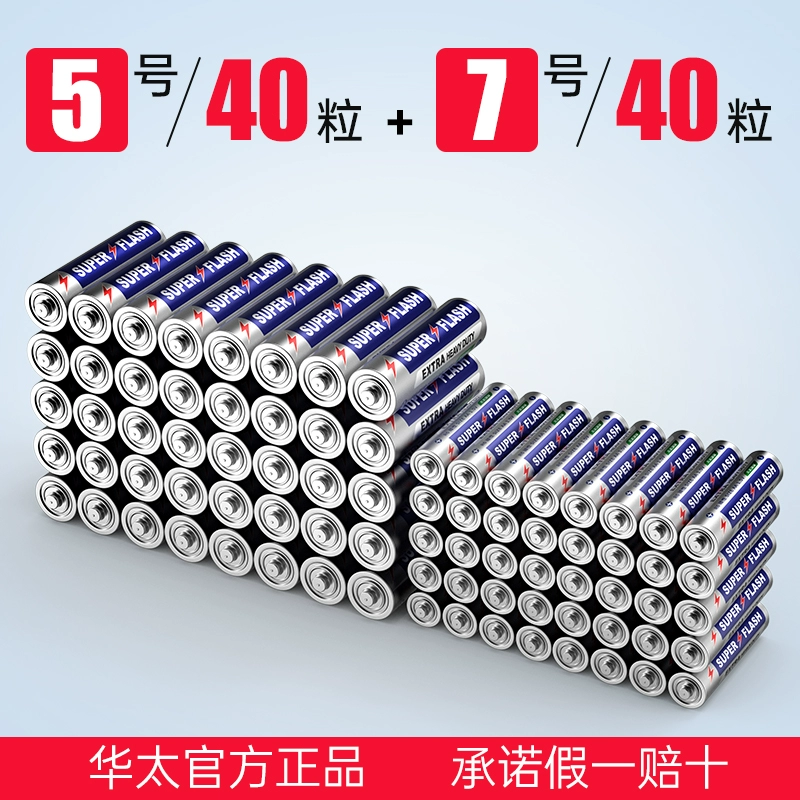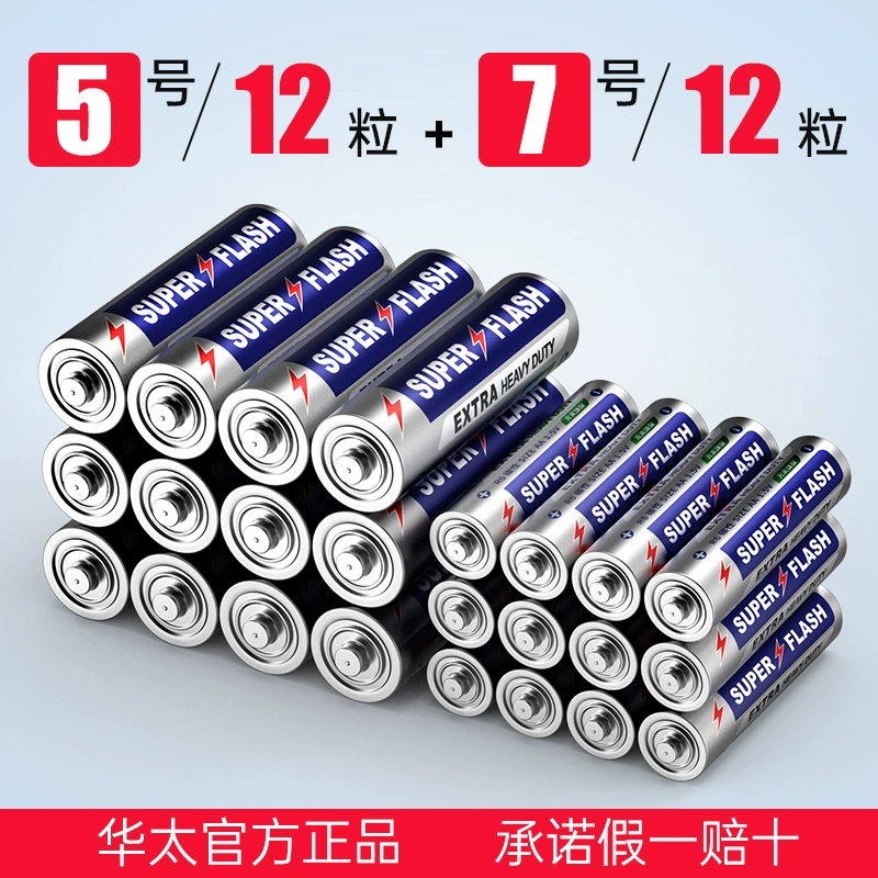 Huatai battery No. 5 No. 7 carbon battery No. 5 No. 7 clock air conditioner TV remote control children's toys mouse keyboard special wholesale 1.5V household AAA dry battery 24 alkaline