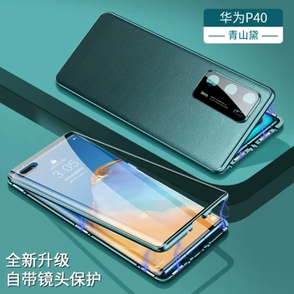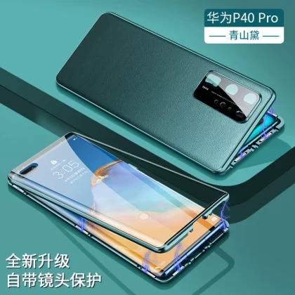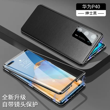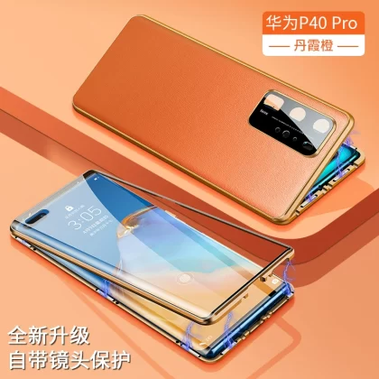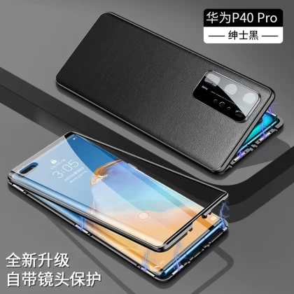 nameOriginal | Huawei p40pro mobile phone case p40 lens double-sided magnetic glass men's all-inclusive anti-fall protective cover plain leather women's model |