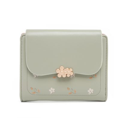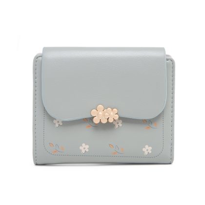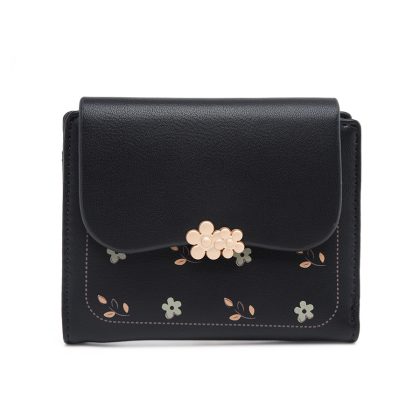 Huo Po * wallet women's new autumn and winter cross-border niche women's wallet Korean style PU flower 3 fold bag folding coin purse