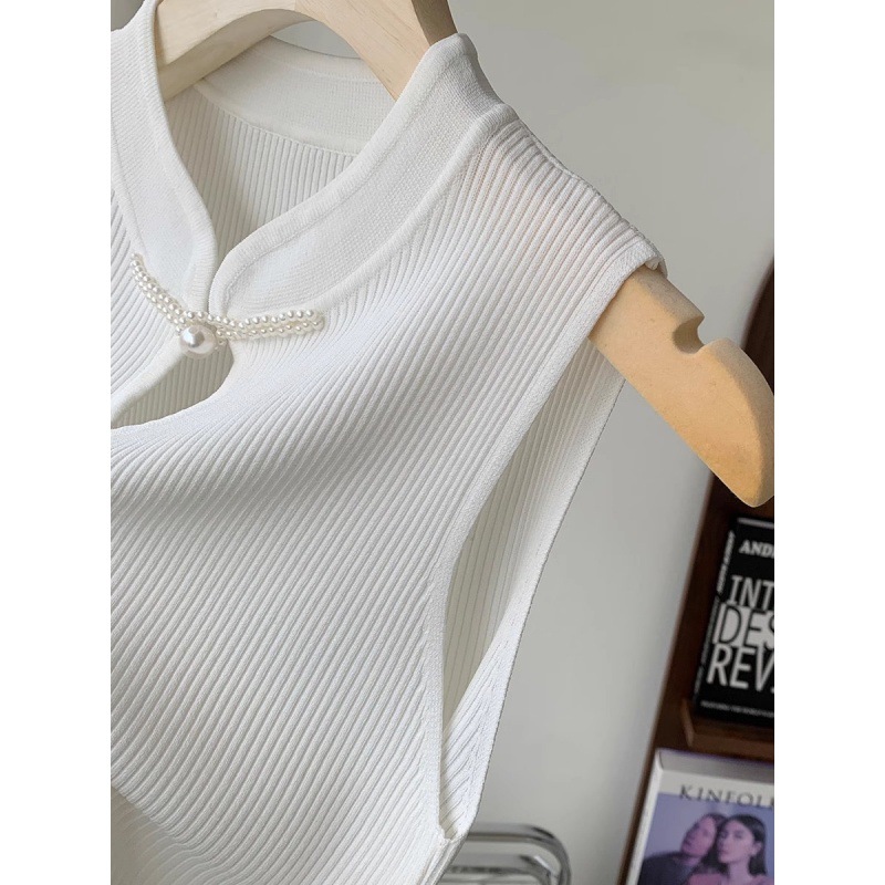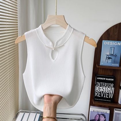 | nameOriginal | Ice Silk Camisole Women's Sleeveless Base Shirt Loose New Chinese Style National Style White Knitted Vest Top |