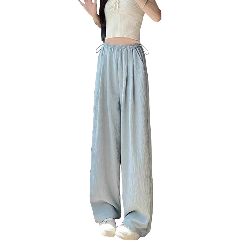 سراويل نسائية صيفية مرنة واسعة الساق مصنوعة من الحرير الجليدي سراويل نسائية صيفية جديدة رفيعة عالية الخصر وملمس حمض الخليك سراويل حليب ليماموتو الصغيرة