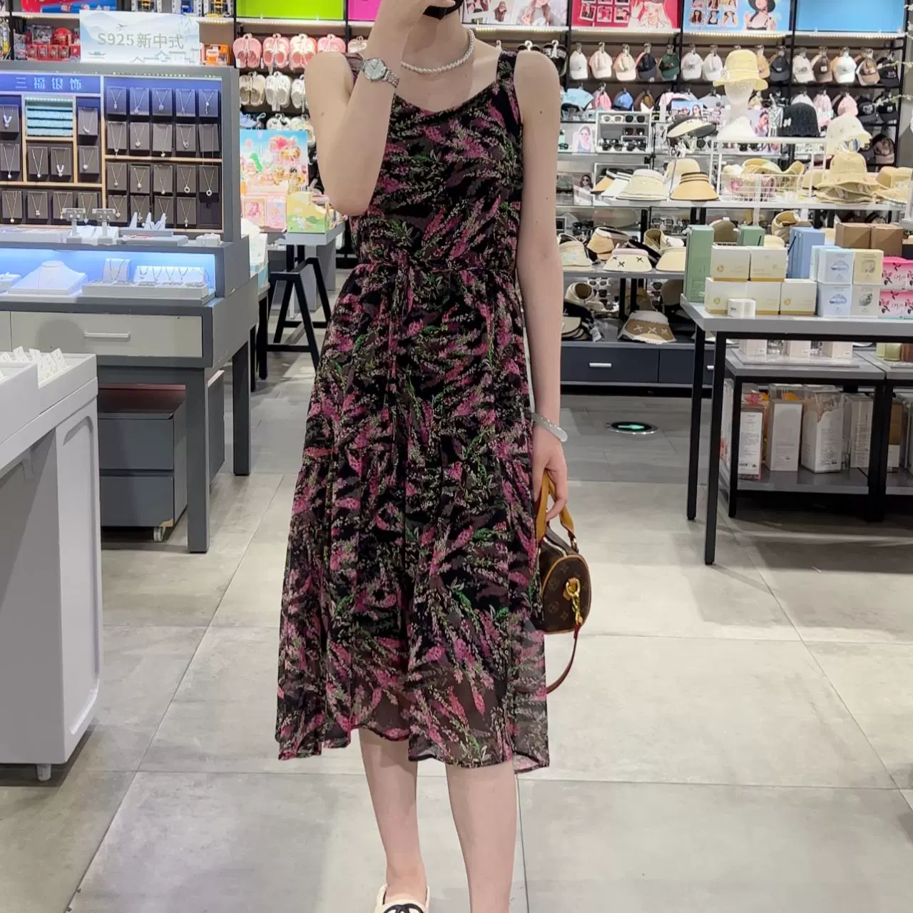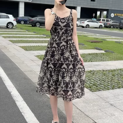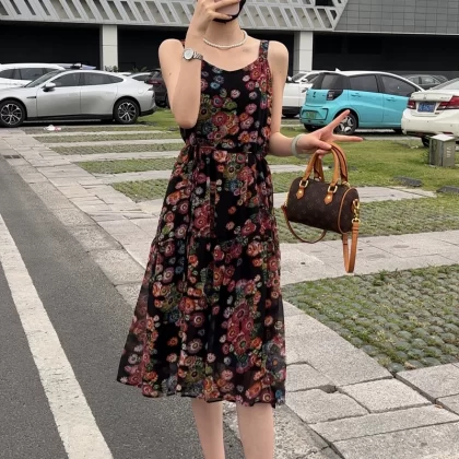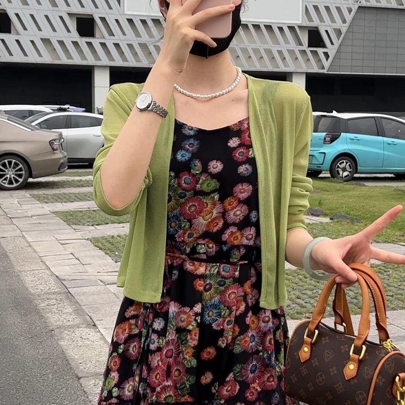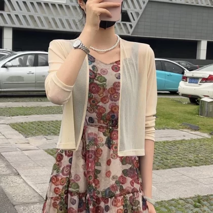 | nameOriginal | Ice silk floral suspender skirt mid-length knitted cardigan |