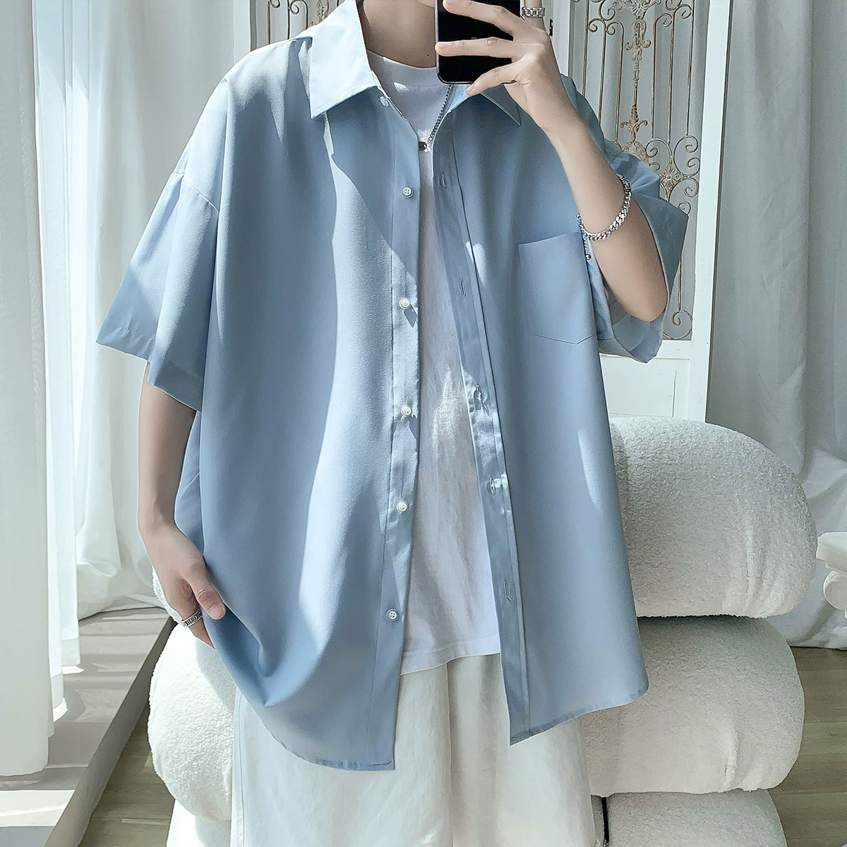 | nameOriginal | Ice silk half-sleeved student versatile and handsome drape shirt |