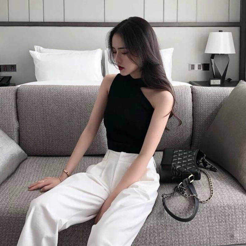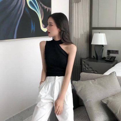 Ice Silk knitted camisole women's inner base outer wear sexy short off-shoulder shoulder Korean style halter top thin