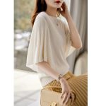 | nameOriginal | Ice Silk Knitted Sweater Women's Summer and Autumn 2024 New Texture Temperament Age-reducing Loose Slimming Ruffled Bat Sleeve T |