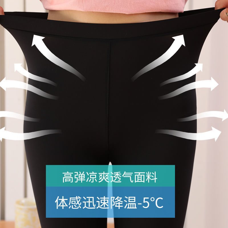Ice Silk Leggings Women's Outer Wear Summer Thin plus size Stretch Silk High Waist Tight Slim-fit Black Cropped Pants