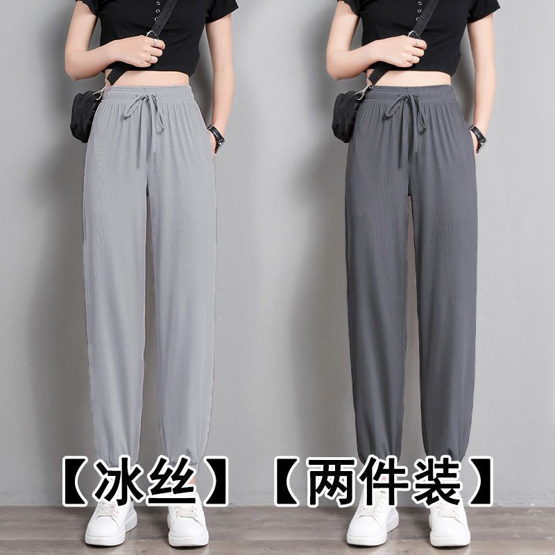 السراويل الرياضية الحرير الجليد المرأة الصيف رقيقة فضفاضة عادية وي السراويل 2024 جديد الربيع والخريف السراويل هارلان السراويل الساق العصرية