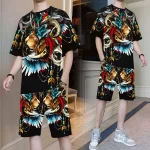 Ice Silk Summer Men's Short Sleeve Large Size Qinglong T-Shirt