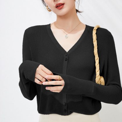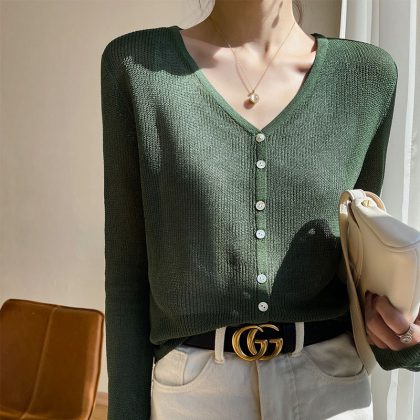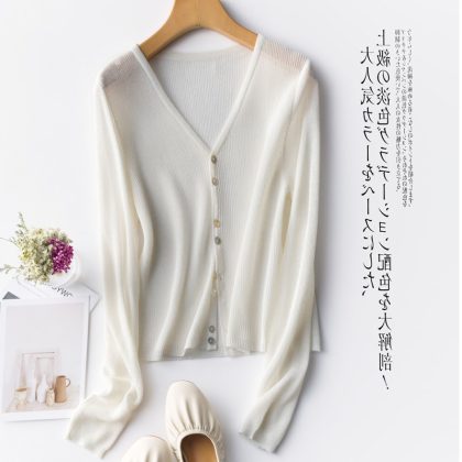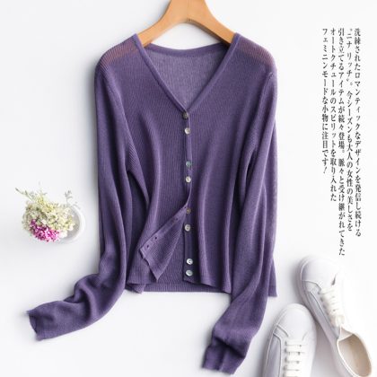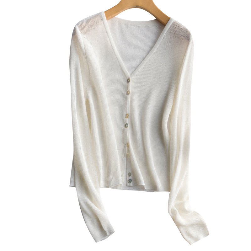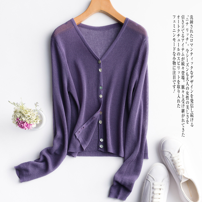 سترة حريرية واقية من الشمس من الحرير الجليدي سترة نسائية قصيرة خارجية صيفية جديدة بأكمام طويلة ورقيقة من الكتان معطف واقي من الشمس معطف شال