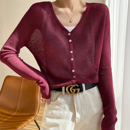 Ice Silk Sunscreen Cardigan Women's Short Outer Top Summer New Long-sleeved Thin Linen Sunscreen Coat Shawl Coat