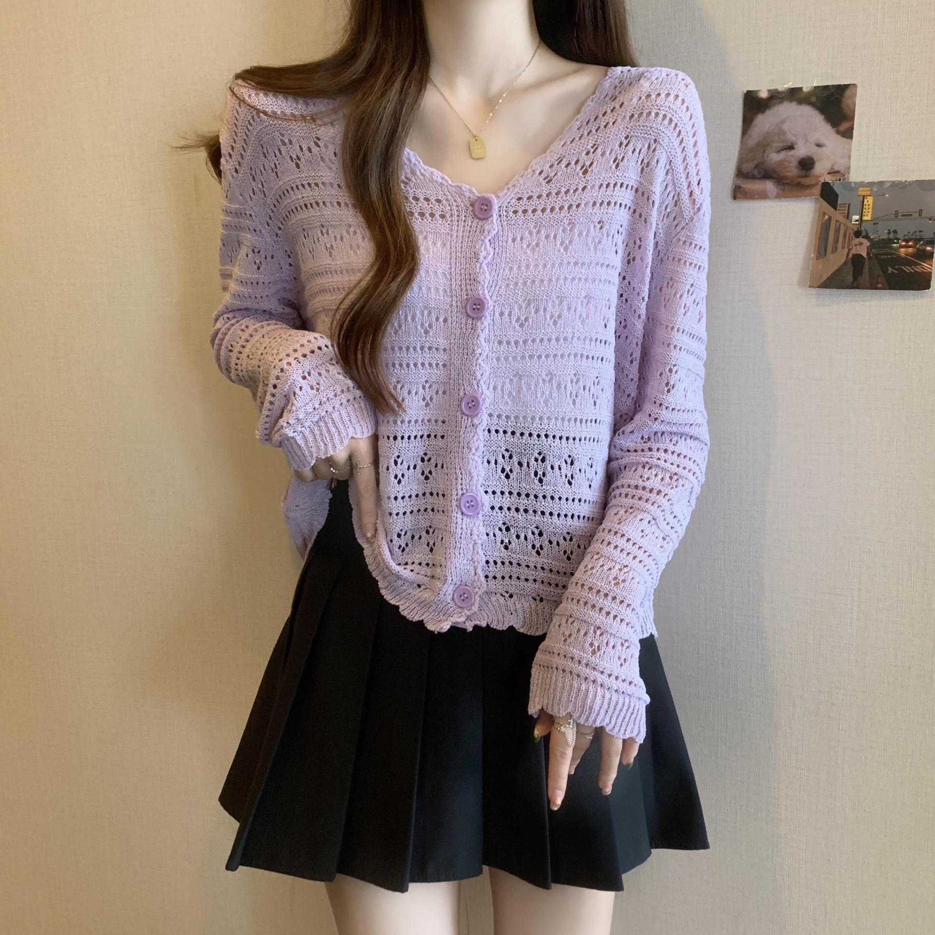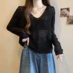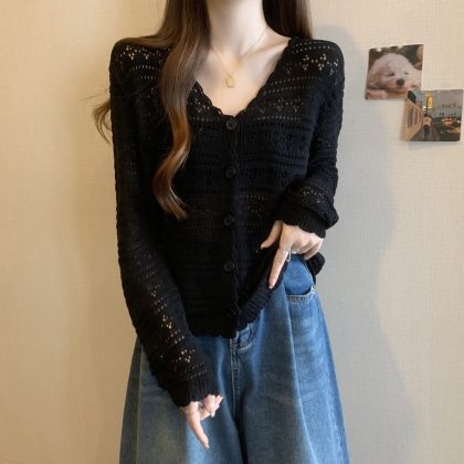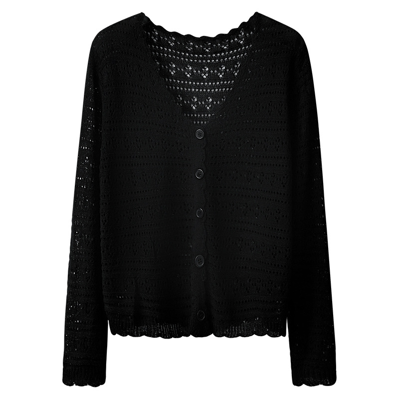 | nameOriginal | Ice Silk Sunscreen Knitted Cardigan Women's Summer Chubby Girls Large Size V-Neck Black Thin Hollow Shawl Outer Short Jacket |