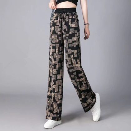 | nameOriginal | Ice Silk Wide Leg Casual Pants Women's 2024 Summer New Style Elastomer High Waist Slimming All-match Mop Pants Plaid Pants |