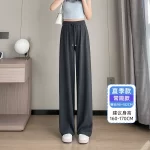 | nameOriginal | Ice silk wide-leg pants for women in summer, cool jade silk high-waist drape, loose narrow version straight casual sports knitted pants |