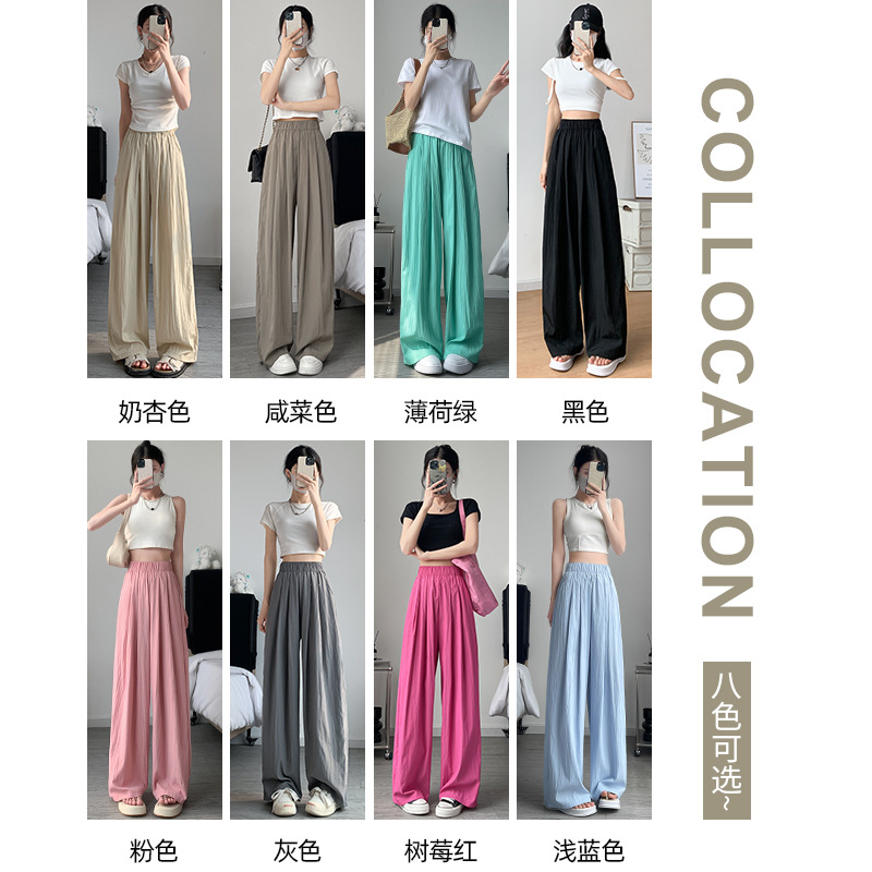 | nameOriginal | Ice Silk Wide-Leg Pants Women's Summer Thin High Waist Drape Straight Pants Casual Small Texture Pleated Yamamoto Pants |