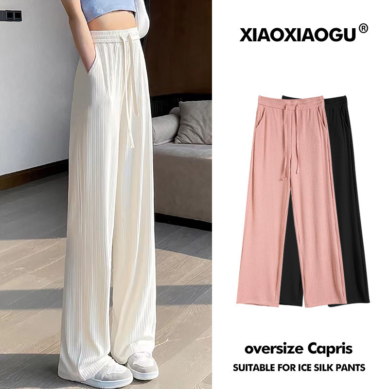 | nameOriginal | Ice silk wide leg pants women's summer thin sunscreen pants drape casual narrow straight pants plus size women's pants fat mm200 kg |