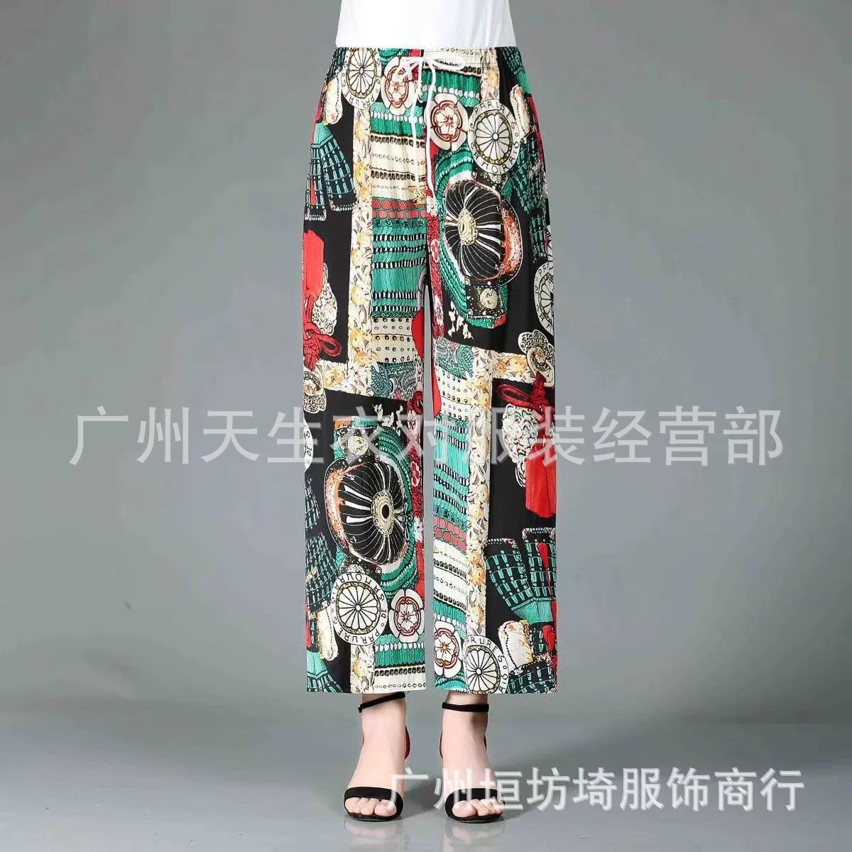 سراويل نسائية واسعة الساق من الحرير الجليدي سراويل صيفية من الحرير الجليدي رفيعة في منتصف العمر وكبار السن سراويل رائعة سراويل غير رسمية فضفاضة مستقيمة